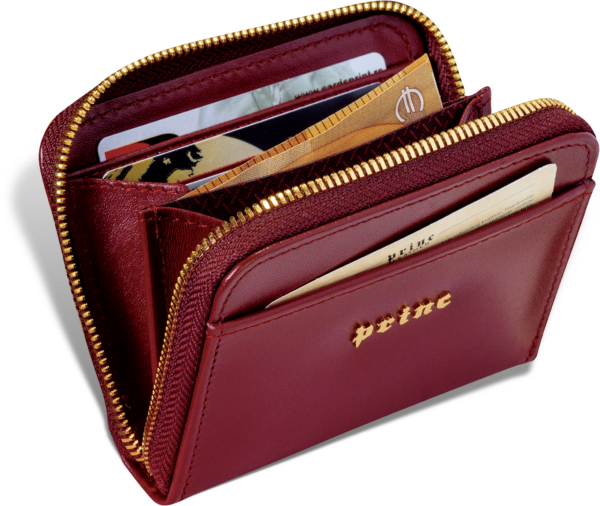 Ovaj artikal je ručno izrađen od visokokvalitetne goveđe kože, sa svilenom postavom. Glavna pregrada novčanika je podeljena na dva dela za papirni novac skrivenim džepom. Sa obe unutrašnje strane nalazi se po 2 pregrade za kartice, ličnu kartu, saobraćajnu i vozačku dozvolu, i sl., iza kojih je po jedan veći džep za dokumenta. Napred se nalazi pregrada za dokumenta koja se češće koriste, bez potrebe otvaranja novčanika. Novčanik se sa tri strane zatvara rajsferšlusom sa poliranim metalnim zupcima, iste boje zlata kao i metalni logo Princ na prednjoj strani. Izrađuje se u više atraktivnih boja. Na luksuznu ambalažu u kojoj dolazi može se utiskivati logo naručioca.