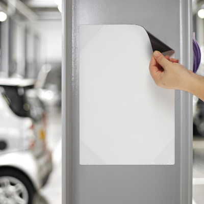 Jaka savitljiva follija sa rupom za vertikalno kačenje na zid. Papir sa oznakom ili obaveštenjem se lako ubacuje i menja po potrebi. Može se koristiti dvostrano.