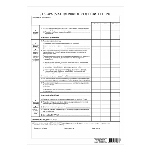 DEKLARACIJA O CARINSKOJ VREDNOSTI ROBE DCV BIS