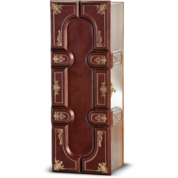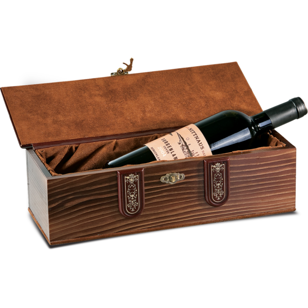 Ovaj elegantni artikal ručno je izrađen od jelovog drveta, lakiranog do visokog sjaja, presvučenog kvalitetnom goveđom kožom, ukrašene dubokim ručnim reljefom. Cela unutrašnjost je postavljena čojom, koja štiti flašu koja će se kasnije naći unutra. Sa donje strane takođe je postavljena mekanom čojom, ovog puta u funkciji sprečavanja radne površine od oštećenja. Kopča se elegantnom metalnom bravicom u boji starog zlata, i dolazi upakovana u luksuznu tkanu vrećicu. Na sam artikal se može utiskivati logo naručioca.