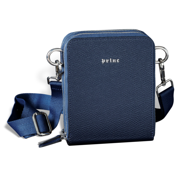 Ova muška torbica je ručno izrađena od visokokvalitetne rebraste goveđe kože. Spolja je podeljena na dva dela koja se posebno zatvaraju rajsferšlusima sa poliranim metalnim zupcima, iste boje srebra kao i metalni logo Princ na prednjoj strani. Unutrašnjost je presvučena svilenom postavom. U prvom delu se nalazi kožni džep za mobilni telefon, i držač za jednu olovku ili naliv pero, a pored toga je džep za novac i pregrade za osam kartica, ličnu kartu, vozačku i saobraćajnu dozvolu, i sl. U drugom delu se nalazi džep napravljen od učvršćene postave, koji deli tu pregradu na dva dela. Torbica sa strana ima niklovane alke na koje se kači kaiš od kvalitetne gurtne, podesive dužine, tako da se može nositi preko ramena. Jako prefinjenog dizajna, pruža veliku organizovanost na vrlo malom prostoru, i pogodna je za sve prilike. Izrađuje se u braon, crnoj i teget boji. Na luksuznu ambalažu u kojoj dolazi može se utiskivati logo naručioca.