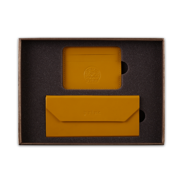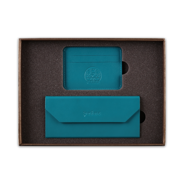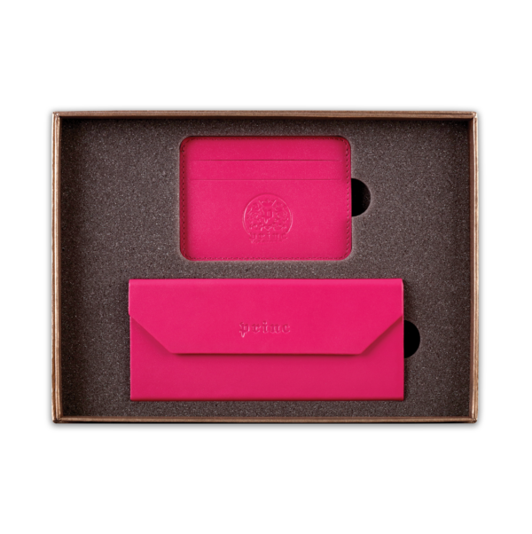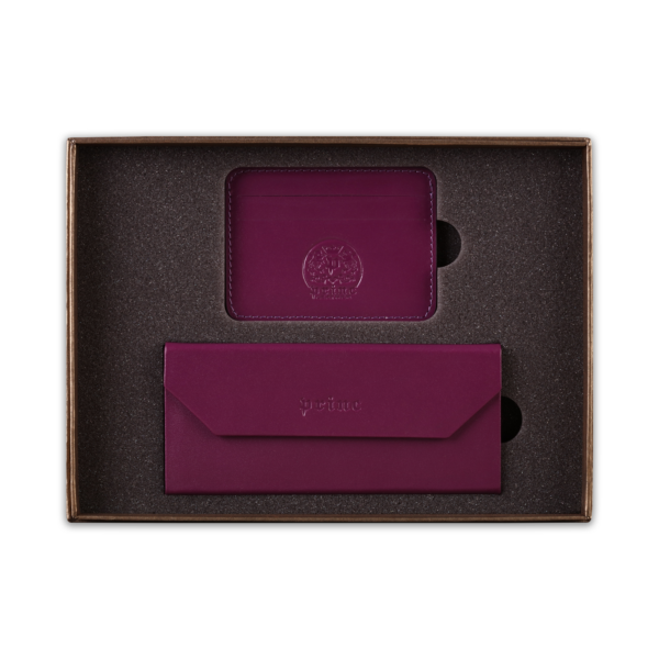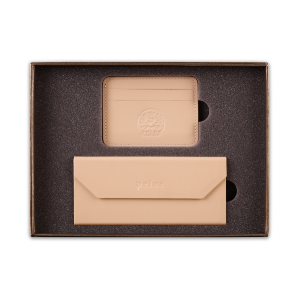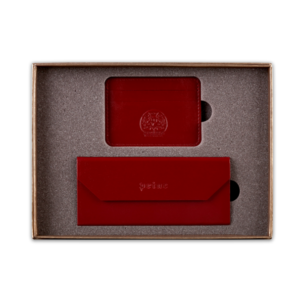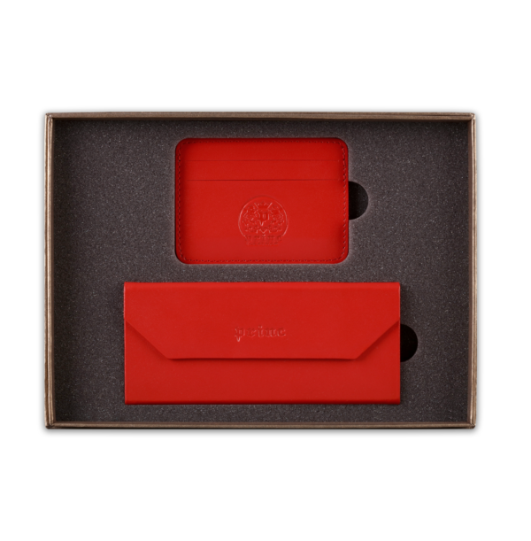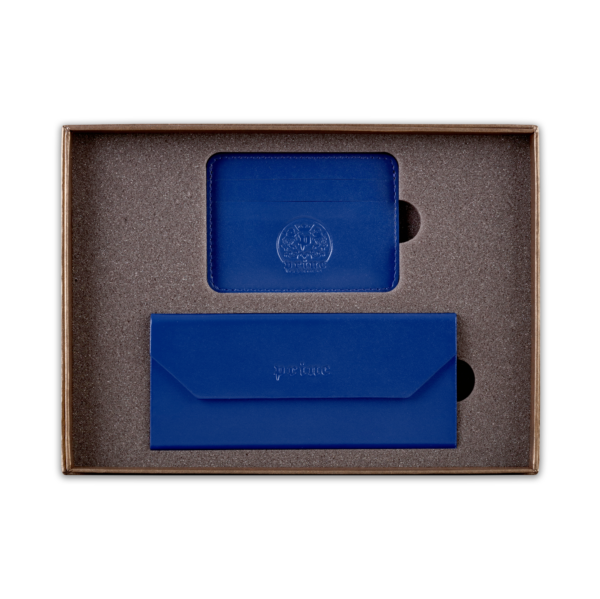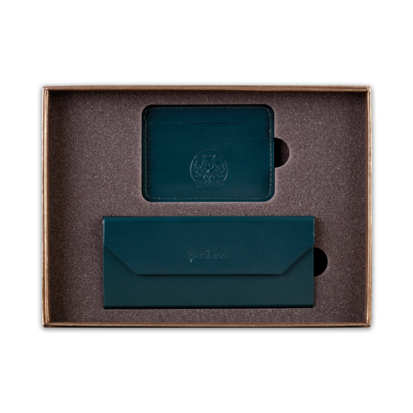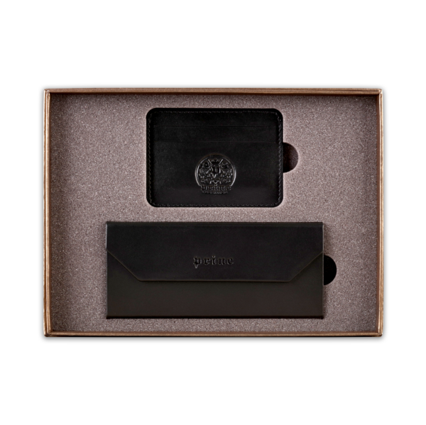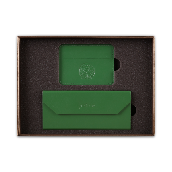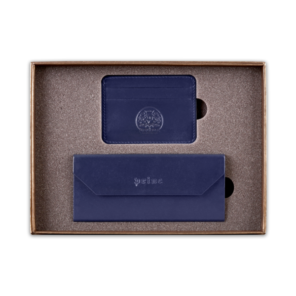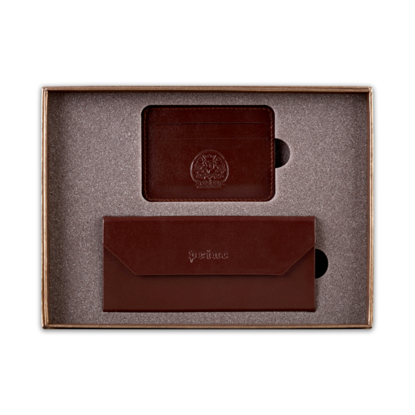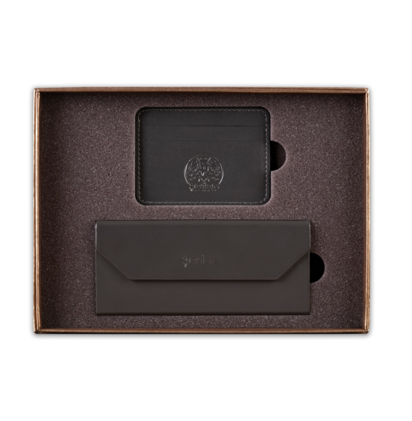 Ovaj poklon set sadrži dva artikla, ručno izrađena od visokokvalitetne goveđe kože, upakovana u luksuznu ambalažu postavljenu sunđerom. Prvi artikal je futrola za naočare, koja kada je prazna i sklopljena zauzima malo prostora u torbi ili na stolu, a kada su u njoj naočare, štiti ih zbog čvrstine materijala. Pogodna je i za naočare za sunce. Drugi artikal u setu je futrola za kartice, koja ima zadžepke za po dve kartice sa obe strane, i u sredini džep koji može služiti za papirni novac.  Na artikle, kao i na luksuznu ambalažu u koju je set upakovan, može se utiskivati logo naručioca.
