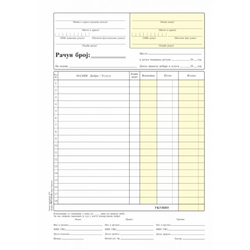 Račun A4 NCR bez pdv-a